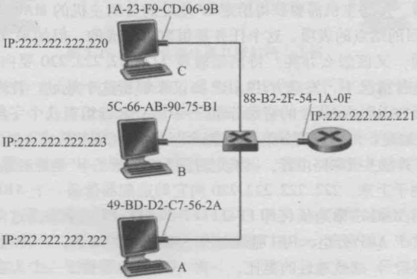 所以, 如果ARP table中本来就有某个表项, 从ip222.222.222.220向222.222.222.222发送数据报就很容易了, 但是如果没有, 发送方就需要通过ARP协议来解析ip. 同样的例子, 222.222.222.220会先向适配器发送ARP查询分组, 并且MAC地址为广播地址FF-FF-FF-FF-FF-FF-FF, 这个特殊的ARP分组被封装到帧中, 并被传输进子网. 222.222.222.222所对应的主机就能返回一个响应ARP分组, 222.222.222.220就可以更新ARP表了. 而对于跨子网来说, 路由器会成为连接两个子网的媒介, 先从主机到路由器MAC, 再从路由器到另一个子网某个主机的MAC.