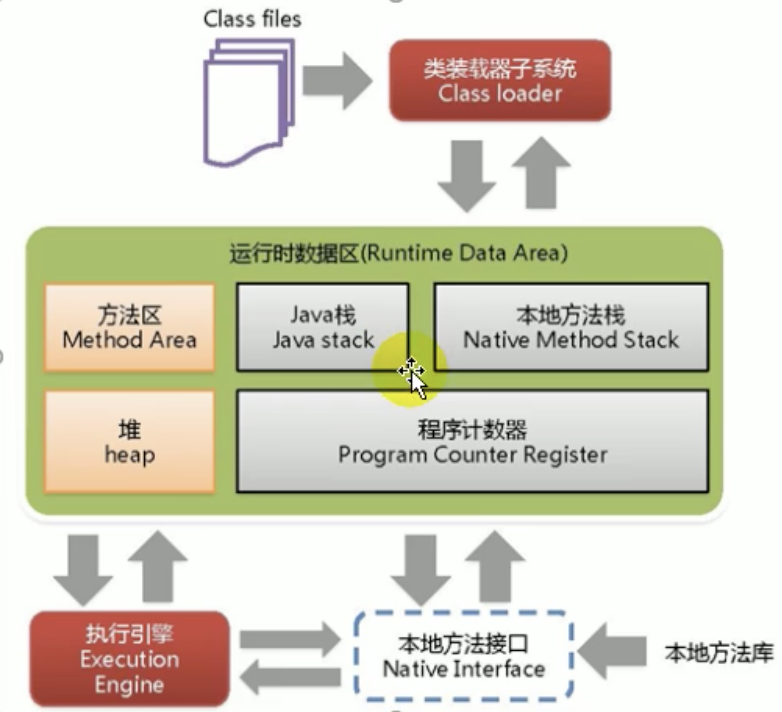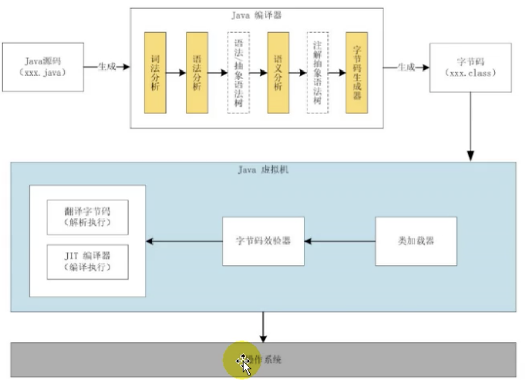 JVM是程序虚拟机, 而VMware属于系统虚拟机. 是二进制字节码的运行环境. 可以一次编译到处运行, 有自动内存管理, 自动垃圾回收功能. 主要结构如下图: