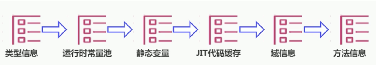 对每个加载的类型(Class, Interface, Enum, Annotation), 方法区中存储以下类型信息. 从易于理解的角度来看, ß域信息和方法信息也可以当做类型信息.